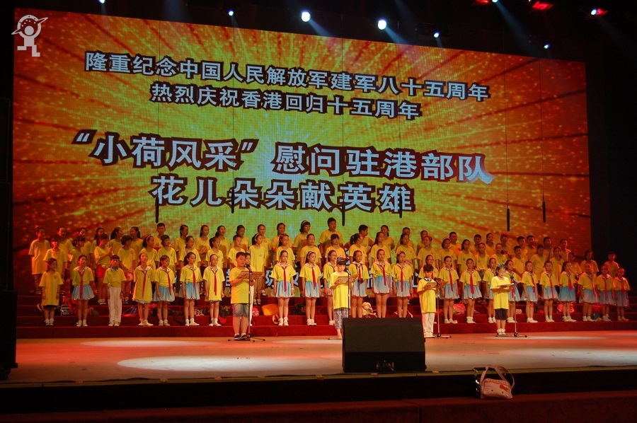 8月1日,少年宫合唱团与其他“新苗杯”获奖团队一起进入香港驻港部队昂船洲海军基地,进行精彩的慰问演出,此次活动经过长时间的精心筹办,得到中港各界机构的大力支持和社会的广泛关注,出席演出活动的嘉宾分别是来自中联办、中国舞协、联合国教科文组织、中央电视台、香港管乐演奏协会、香港离岛文化艺术协会、澳门舞蹈家协会等的领导及代表。中国中央电视台军事频道特派著名主持人抵达现场,并全程录播此次活动,与全国人民一同表达对驻港部队官兵的深切问候。